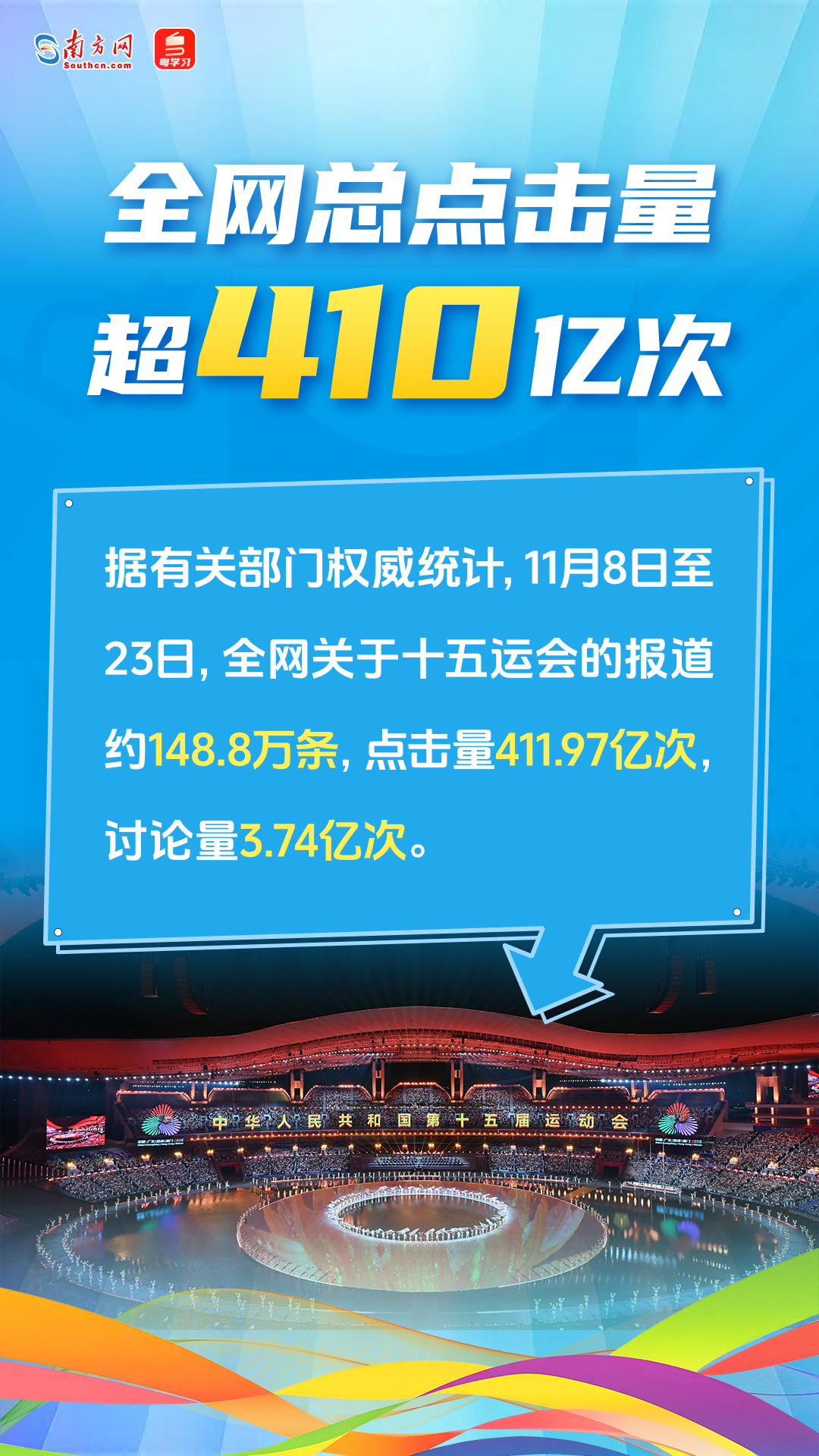 11月9日至21日,全网第十五届全国运动会在粤港澳三地举行,总点举国关注。击量